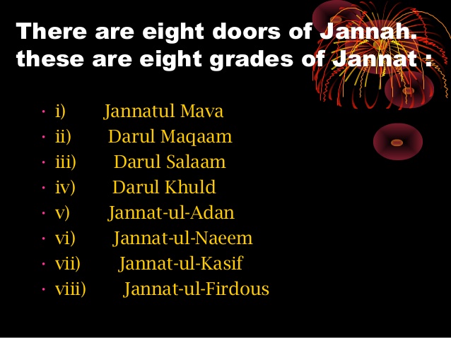 Islamic convention depicts Jannah, or paradise, as having eight entryways or doors. Every entryway has a name that portrays the sorts or attributes of the individuals who will be conceded through it. A few researchers infer that these entryways are found inside Jannah after one enters the fundamental door. The specific idea of these entryways is obscure, yet they were referenced in the Quran and their names were given by the Prophet Muhammad (PBUH).